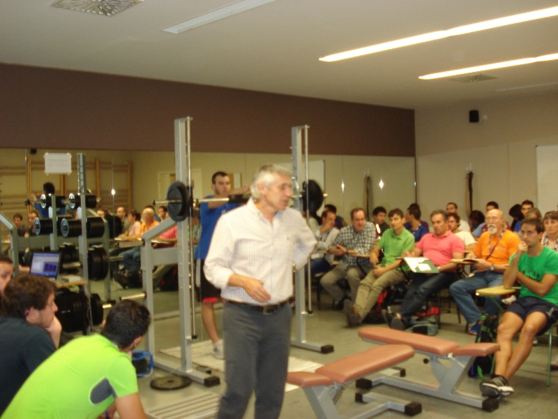 Durante el curso, que comenzó el pasado jueves, se abordaron temas realcionados con la nutrición deportiva, a cargo de los profesores de la Universidad de Zaragoza, Iva Marques y Luis Bernués, en las que se dieron a conocer las estrategias actuales de intervención utilizadas en el marco del entrenamiento. El ecuador de las jornadas estuvo marcado por la clase magistral del Catedrático de la Universidad Pablo de Olavide de Sevilla, Juan José González Badillo, quien ofreció a los asistentes toda una jornada sobre los conceptos y procedimientos necesarios para la mejora del rendimiento deportivo en el área técnica y condicional. Para finalizar, el módulo de resistencia estuvo desarrollado por prestigiosos ponentes como José Luis Terreros, Director del Centro de Medicina del Deporte del Gobierno de Aragón, Nicolás Terrados, Director de la Unidad Regional de Medicina Deportiva del Principado de Asturias, y Mariano García Verdugo, Profesor del Master de Alto Rendimiento Deportivo del Comité Olímpico Español, que trataron la valoración funcional para el entrenamiento y su planificación. Las sesiones sirvieron de colofón de un encuentro lleno de profesionales que desarrollan su labor en el ámbito del entrenamiento deportivo profesional, ofreciendo importantes e interesantes resultados sobre la materia.