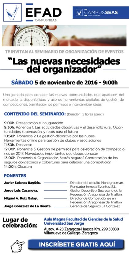 Jornada promovida por EFAD-Campus SEAS que se realizara en el Campus de la Universidad de San Jorge el 5 de noviembre de 2016.