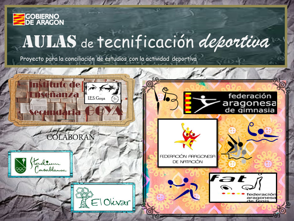 Este es el primer curso en el que 16 alumnos aragoneses (8 alumnos y 8 alumnas todos ellos de 1º de ESO) participan en el programa piloto de tecnificación deportiva cualificada del Departamento de Educación y que forma parte del Plan de Tecnificación Deportiva de Aragón. Esta iniciativa comenzó en septiembre en el IES Goya de Zaragoza en colaboración con las federaciones deportivas aragonesas de natación, waterpolo, tenis y gimnasia rítmica y los clubes deportivos Stadium Casablanca y EM El Olivar (que ceden sus instalaciones para los entrenamientos).