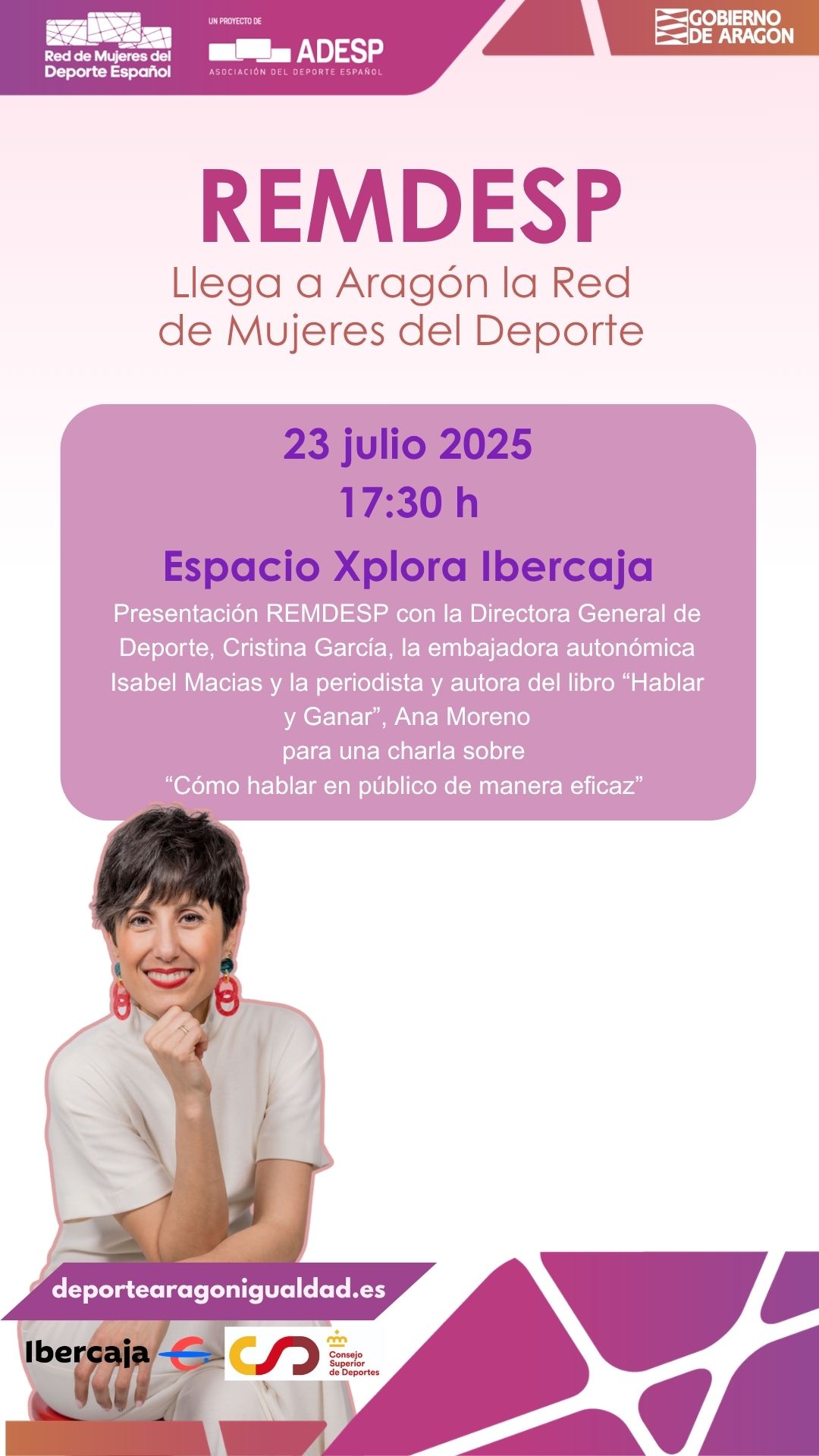 El próximo 23 de julio a las 17:30 h, Aragón se suma a la Red de Mujeres del Deporte Español con un acto de presentación en el Espacio Explora Ibercaja en Zaragoza.