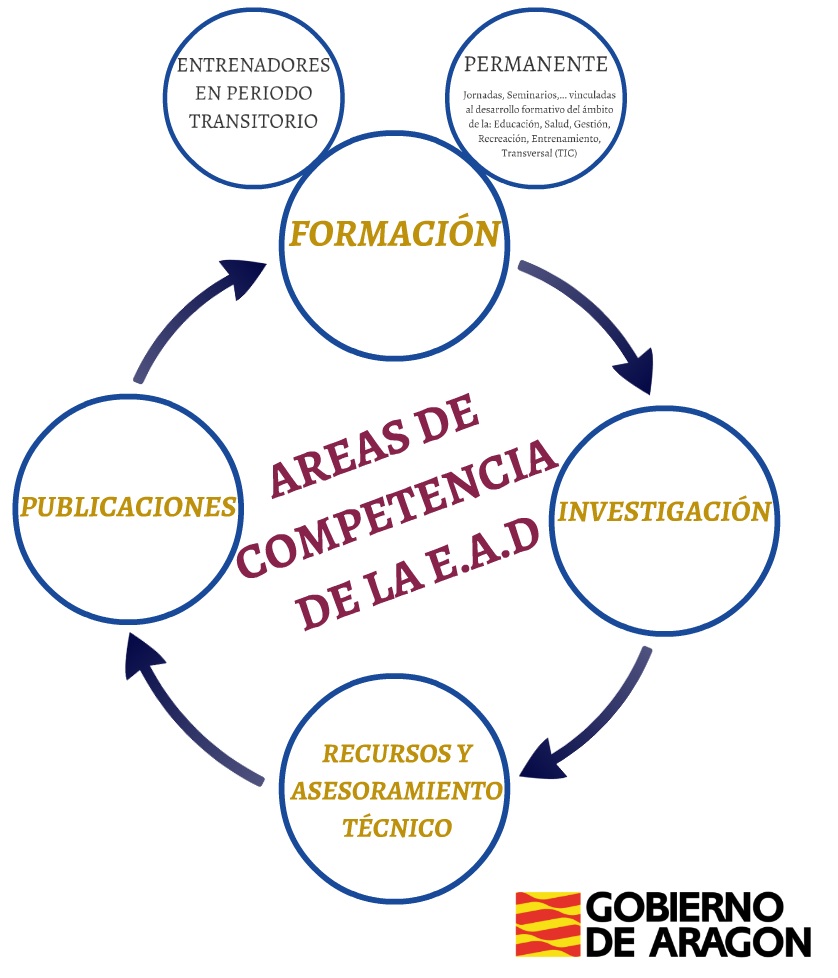 La EAD, adscrita a la Dirección General del Deporte del Departamento de Educación, Cultura y Deporte, es el órgano competente en el desarrollo de la formación oficial de los entrenadores deportivos en periodo transitorio y coordina toda aquella acción formativa complementaria para especialistas de las actividades físicas y/o deportivas.