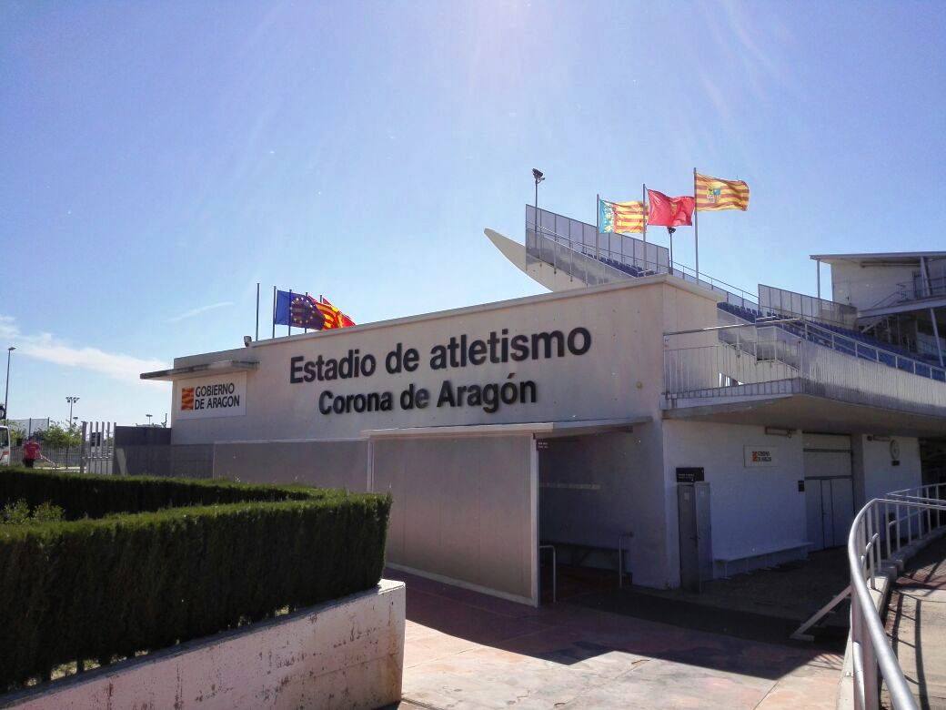 El estadio de atletismo "Corona de Aragón" pertenece al Gobierno de Aragón, cuyo Departamento de Educación, Cultura y Deporte del Gobierno de Aragón, del que depende la Dirección General del Deporte, gestiona su explotación a través del Servicio de Cooperación e Innovación Deportiva.