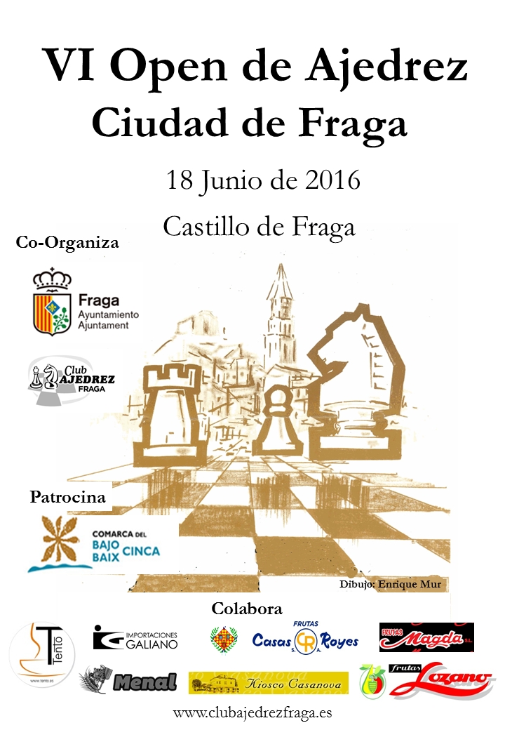 El próximo sábado 18 de Junio se celebrará el VI Open de Ajedrez Ciudad de Fraga en "el Castell" de la misma localidad a lo largo de todo el día.